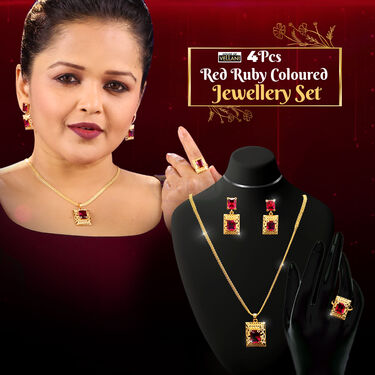YOUR PERFECT ACCESSORY FOR ALL OCCAIONS - 4 Pcs Red Ruby Colored Jewellery Set(GCPER1)