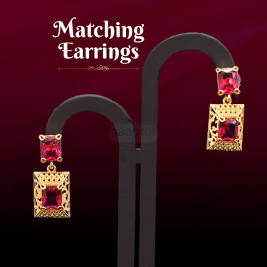 The Golden Chain , Square Pendant with Stone , Matching Earring, Ring set is designed to add a touch of elegance to any outfit. Featuring a beautifully crafted square-shaped pendant and matching earrings, this jewelry collection enhances your style effortlessly. Each piece is adorned with stunning ruby-colored stones that bring a vibrant pop of color, making it perfect for both casual and formal occasions. The golden finishing offers a luxurious look, ensuring you stand out in any gathering. This exquisite set is lightweight and comfortable to wear, allowing you to showcase your unique style without feeling weighed down. It's an ideal gift for loved ones, celebrating special moments and cherished memories.