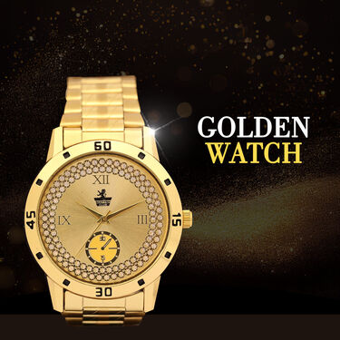 Golden Watch + 2 Golden Chain + Bracelet + Ring (MGW2CBR3)