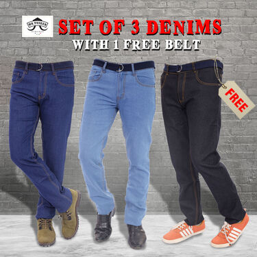 Mr. Tusker Set of 3 Denims with Free Belt (3DCB-1)